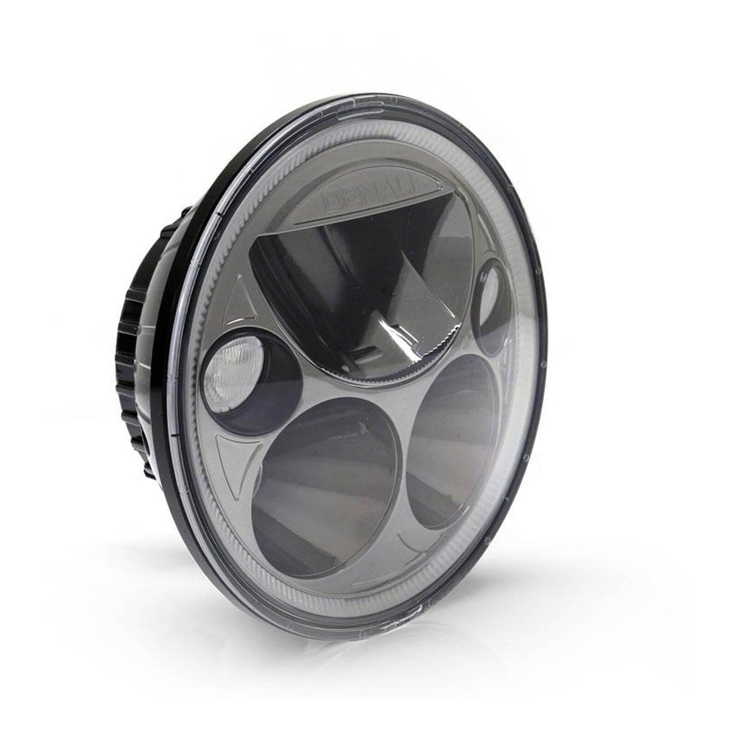 The DENALI DOT approved M5 LED Headlight module is a direct plug and play replacement to your original 5.75 inch sealed beam headlight. It features a super wide low beam, piercing high beam, and halo day time running light. Drop this headlight module inside your motorcycle's existing headlight housing to throw a blazing beam of light three times further than your stock halogen headlight and twice as far as a stock LED headlight. The unique design and black chrome finish of the optics will give your bike that modern custom look while also increasing your visibility to oncoming traffic even during daylight.