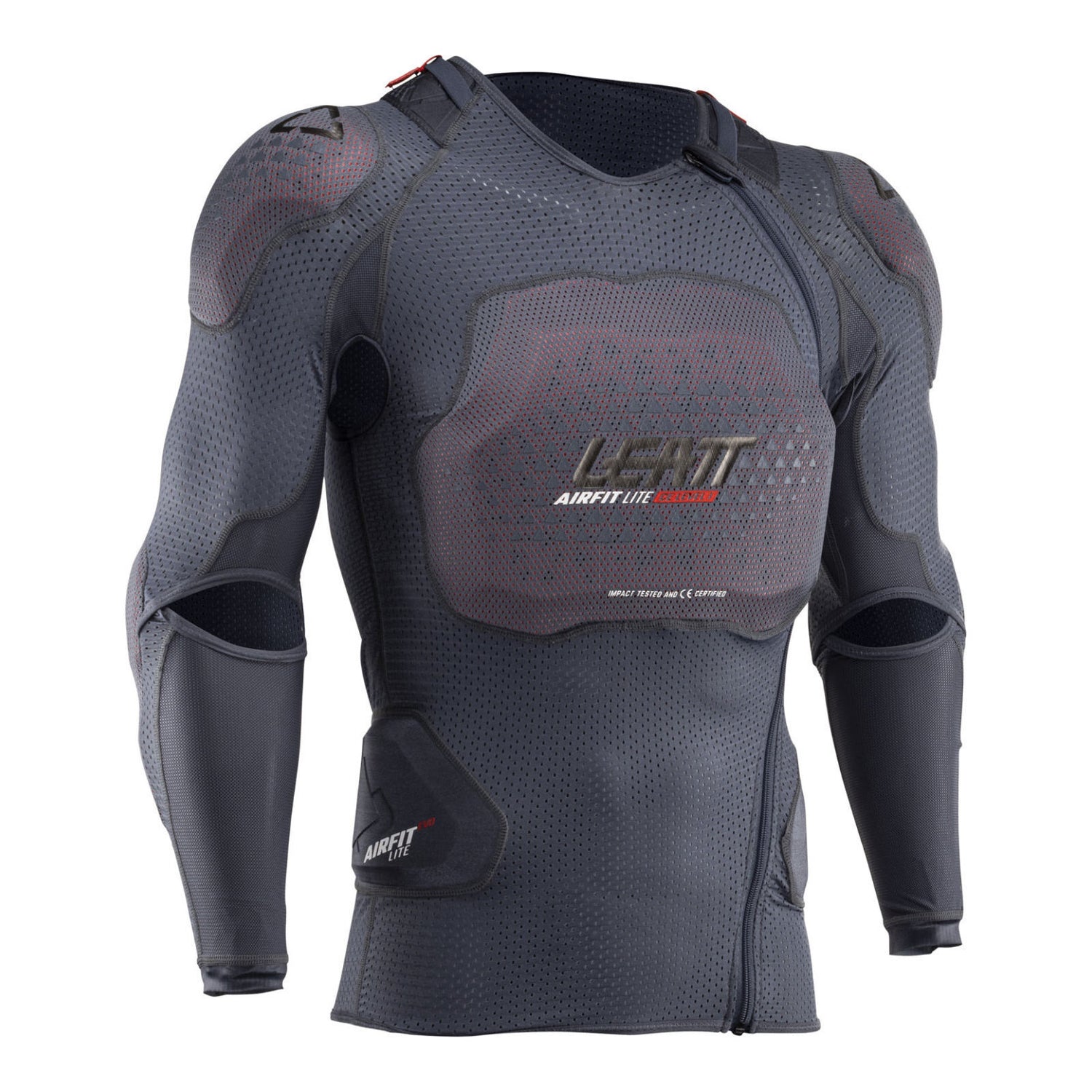 CE impact tested and certified, made of soft, flexible, and ventilated 3DF AirFit impact foam that conforms to your body shape and offers a comfortable fit, together with a MoistureCool flatlock stitched compression body sock, that can work with or without a Leatt Neck Brace.