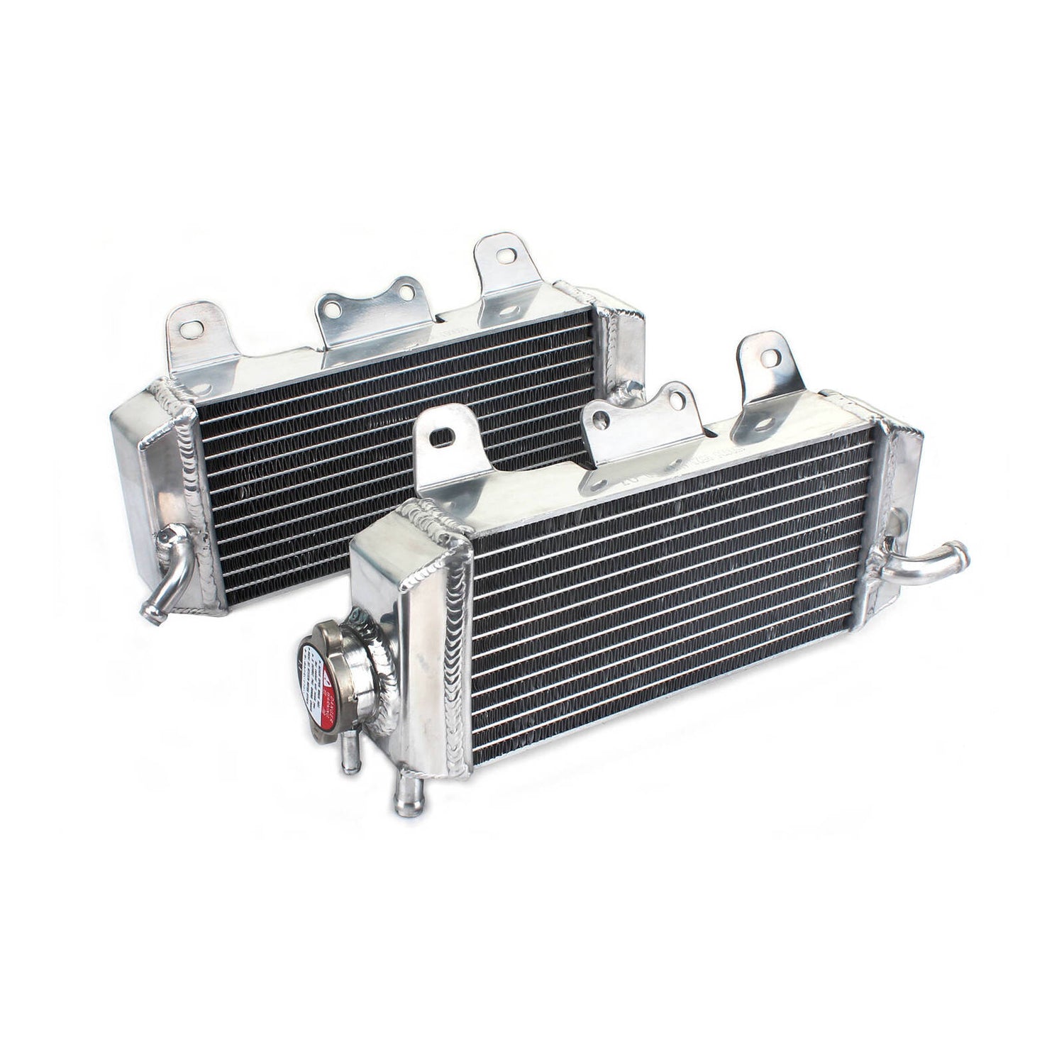 Whites aluminium radiators make great replacements to your bent, cracked, and damaged radiators. Whites radiators offer exceptional cooling and maximum efficiency to ensure your machine's top performance. Based on the OEM specs, a hand-welded aluminium design offers both a great fit and styling. All cap side radiators will include a new radiator cap.