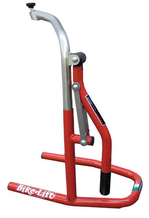 Hand lever front headstock stand for sport bikes. Supplied with a universal conical pin and a nylon rubber adapter for motorcycles whose heaset had no hole underneath. Ideal for Ducati and MV Agusta.