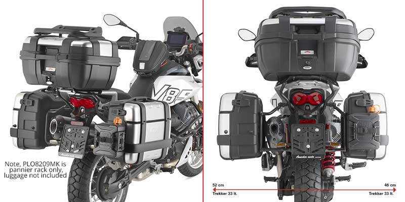 • PLO_MK are Givi's new One-Fit system, a rack preconfigured for Monokey, but can be adapted to take Trekker Outback panniers