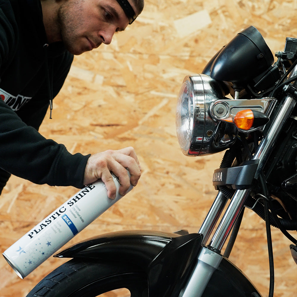 IPONE PLASTIC SHINE is a plastic renovating spray that is used without water. Silicone-based, it gives a new and brilliant appearance to the plastics of your machine. Spray PLASTIC SHINE on a clean, cold vehicle. The product leaves a durable glossy film on the plastics of your vehicle.