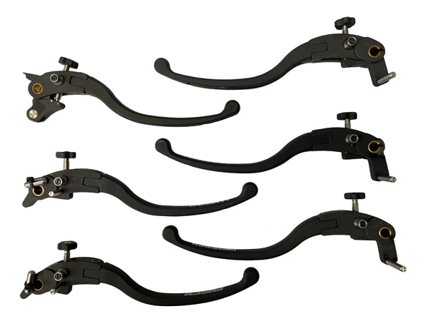 CNC milled from whole billet with the bike brand logo embossed onto the lever, these brake and clutch levers are designed to fold up instead of breaking in an accident or fall.