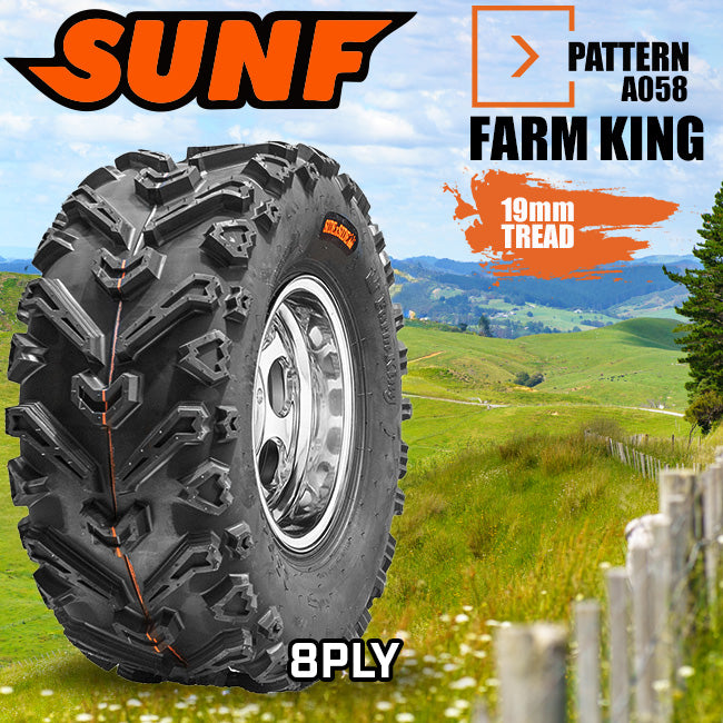SUNF Farm King ATV Tyre - 8ply - 25x8-12^ A-058 8ply Farm King ATV Tyre Sun F is backordered and will ship as soon as it is back in stock.